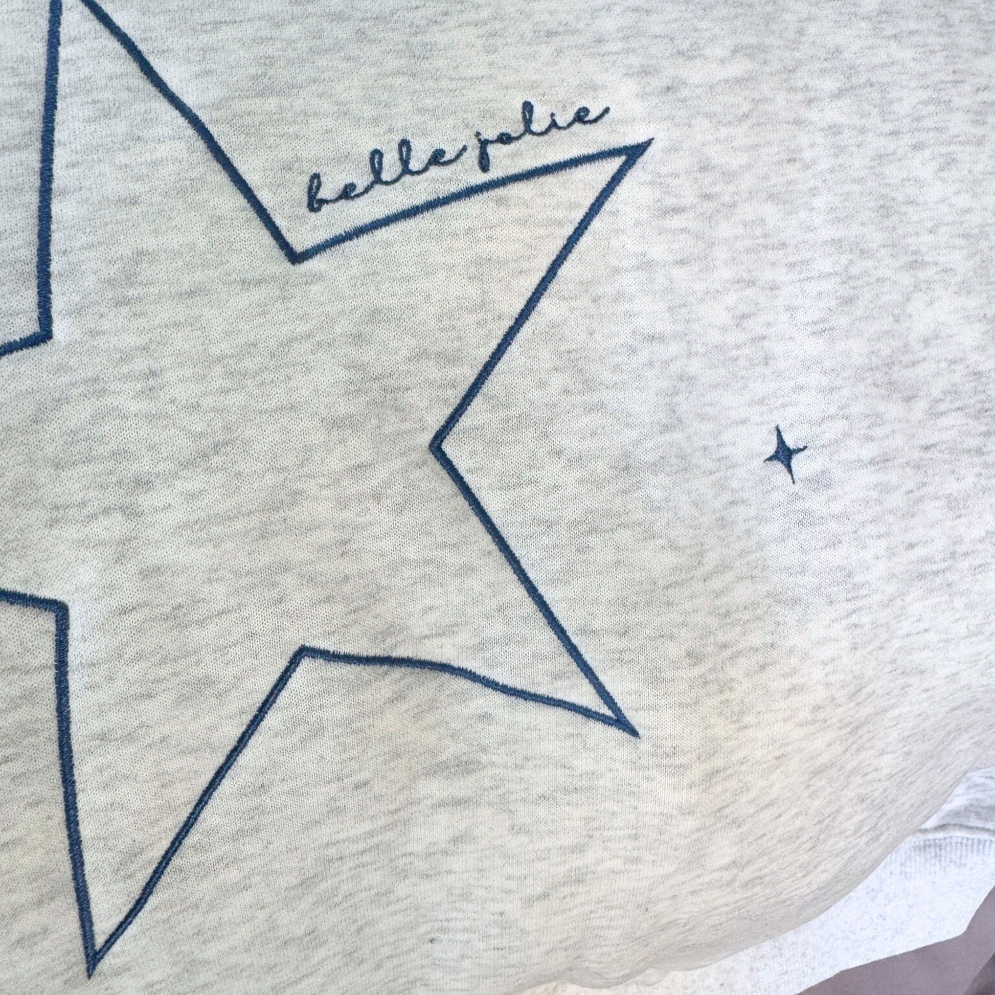 Features hand-drawn star and twinkle embroidery — BELLE JOLIE stitched on back near the stars for a touch of celestial magic.